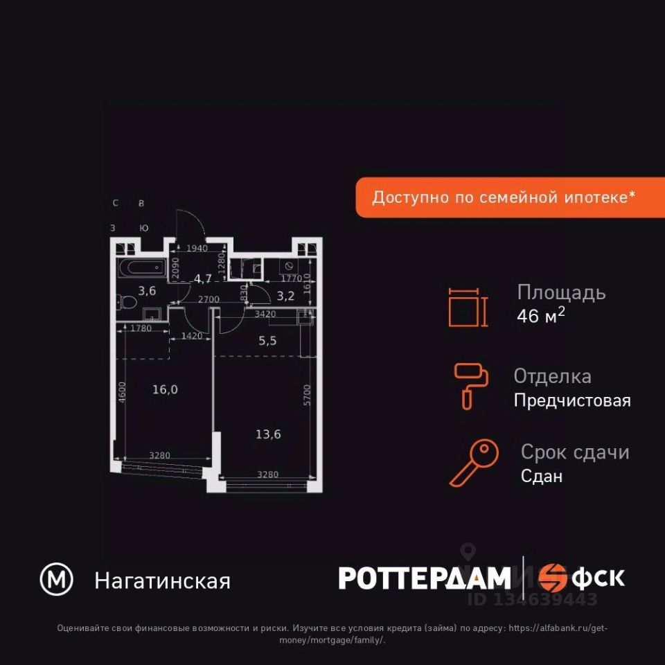 Продаётся 2-к квартира номер 595 общей площадью 46.6 кв.м. на 29-м этаже 29 этажного здания. Предчистовая отделка. Цена с учётом скидки.