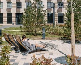 В проекте запланированы также два детских сада, две школы и паркинг. На первых этажах откроются магазины, кафе и другие сервисы — чтобы купить кофе и свежий хлеб к завтраку, можно будет просто спуститься на лифте. В уютных дворах-парках появятся места для отдыха, детские площадки, кофейни и зоны отдыха.