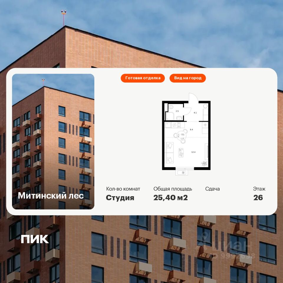 Продаётся квартира-студия площадью 25,4 кв.м на 7 этаже 27 этажного дома (Корпус 14, Секция 5) проекта ПИК Митинский лес. Светлый просторный подъезд на уровне земли, функциональная планировка, большие окна, c отделкой.