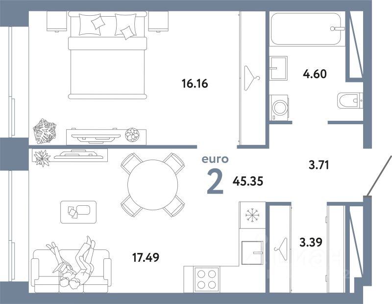 45,35 м²