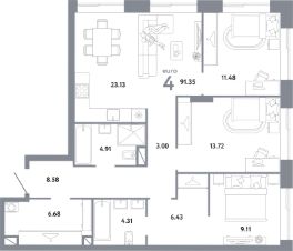 91,35 м²