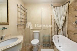 Материалы: пол из натурального мрамора и паркета (американский орех). Стены санузла украшены мраморным панно.
