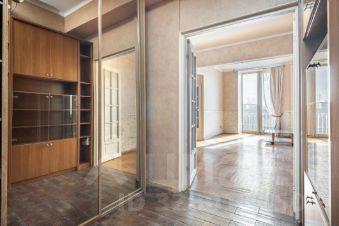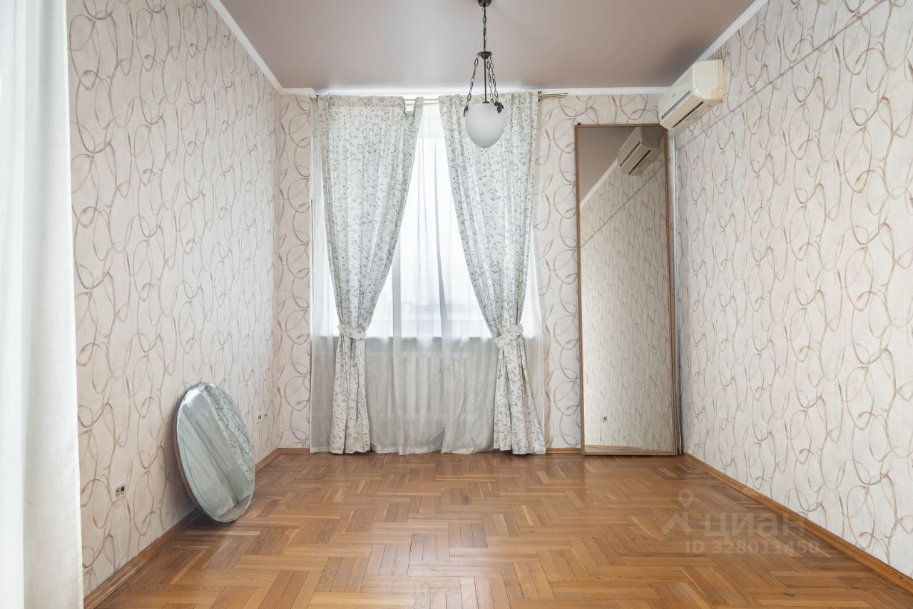 Квартира расположена на 6-м этаже 8-этажного дома. Толщина кирпичных стен около 80 см, ж/б перекрытия, высота потолков 3 м, увеличенные окна, есть 2 балкона. Общая площадь 78 м², комнаты изолированные 20 20 - 12 метров, кухня 9 метров, раздельный санузел, полы — паркет и плитка. Окна выходят в зелёный тихий двор.
