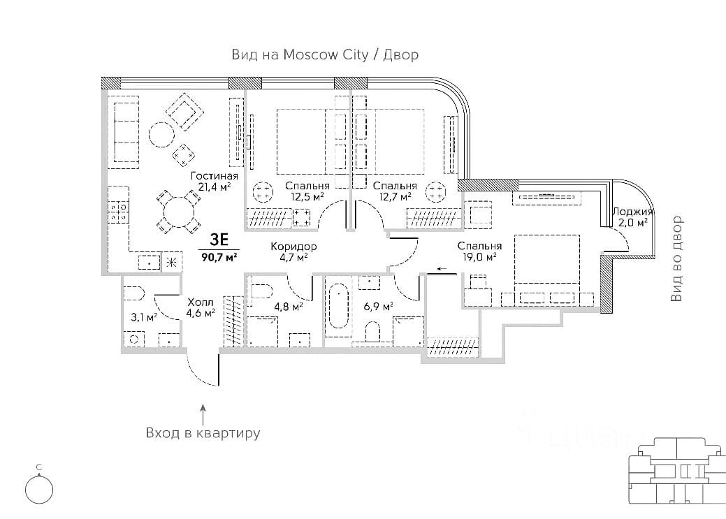 На первых двух этажах будут расположены общественные зоны с торговыми и офисными помещениями. Внутренняя инфраструктура включает в себя: эксплуатируемую кровлю с террасой, внутренний уютный двор-патио и просторные дизайнерские лобби с каминами и зонами отдыха, библиотекой, coffee point, детский клуб площадью 273 кв.м., с образовательными программами. Подземный паркинг на 115 машино-мест. Ближайшая станция метро "Аминьевская" всего в 300 метрах от комплекса. Комплекс окружён зелёными зонами: Долина реки Сетунь, парк Событие, сад Довженко. Строительство ведётся опережающими темпами, окончание запланировано на 1 квартал 2026 года. Квартира без отделки, переуступка от физ.лица. Эксклюзивно от ИММЕР ГРУПП. Участник ассоциации агентств элитной недвижимости AREA.