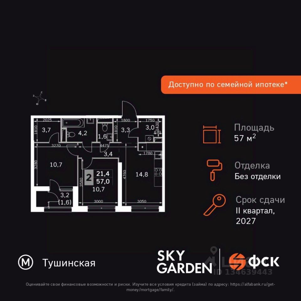 Продаётся 2-к квартира номер 135 общей площадью 57 кв.м. на 18-м этаже 29 этажного здания. Без отделки. Цена с учётом скидки.
