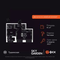 Продаётся 1-к квартира номер 13 общей площадью 41.8 кв.м. на 3-м этаже 29 этажного здания. Чистовая отделка. Цена с учётом скидки.