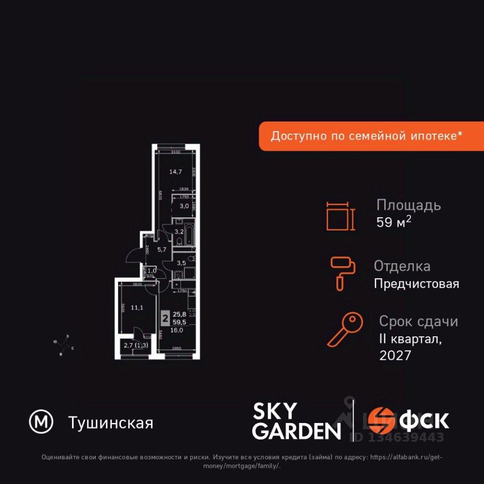 Продаётся 2-к квартира номер 693 общей площадью 59.5 кв.м. на 17-м этаже 30 этажного здания. Предчистовая отделка. Цена с учётом скидки.