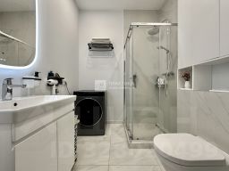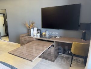 В апартаментах сделан дизайнерский ремонт. Мебель изготовлена на заказ. Множество места для хранения. Кровать Ergomotion с массажем и возможностью изменения наклона. Встроенная кухонная техника. Апартаменты оснащены системой Умный Дом Алиса - автоматизированные шторы, потолочный свет в комнате и прихожей, датчик движения, управление телевизором.