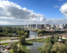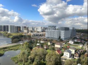 Квартира находится на 15-м этаже с окнами на солнечную сторону. Панорамное остекление и высота потолков 3,15 м наполняют пространство светом и воздухом. Открывается живописный вид на лесной массив, пруд и частный сектор.
