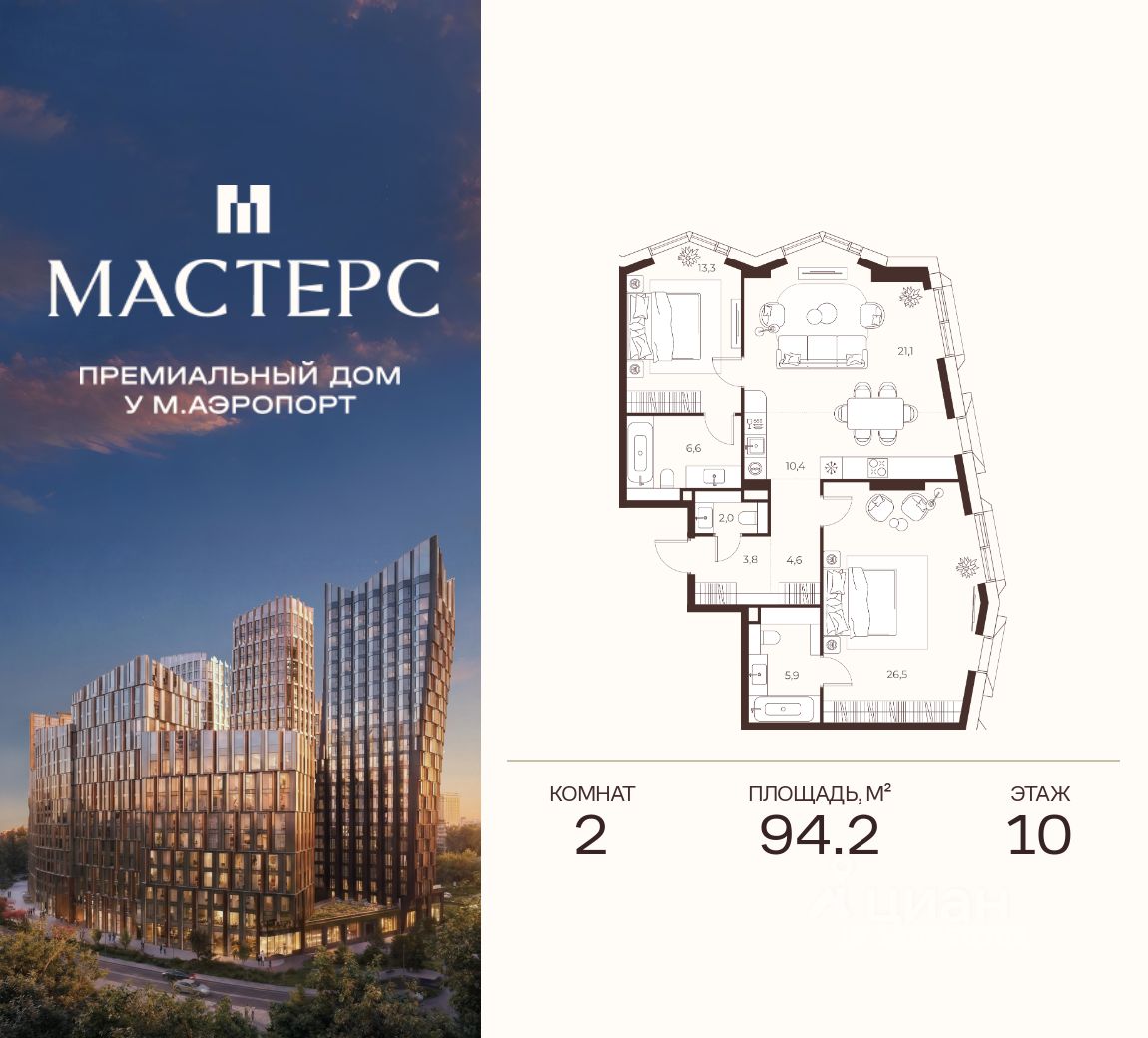 МАСТЕРС — премиальный дом в престижной северной части Москвы, всего в 15 минутах езды от Кремля. Непосредственная близость к метро "Аэропорт" обеспечивает превосходную транспортную доступность. Это идеальный баланс приватности, природы и динамики столицы.