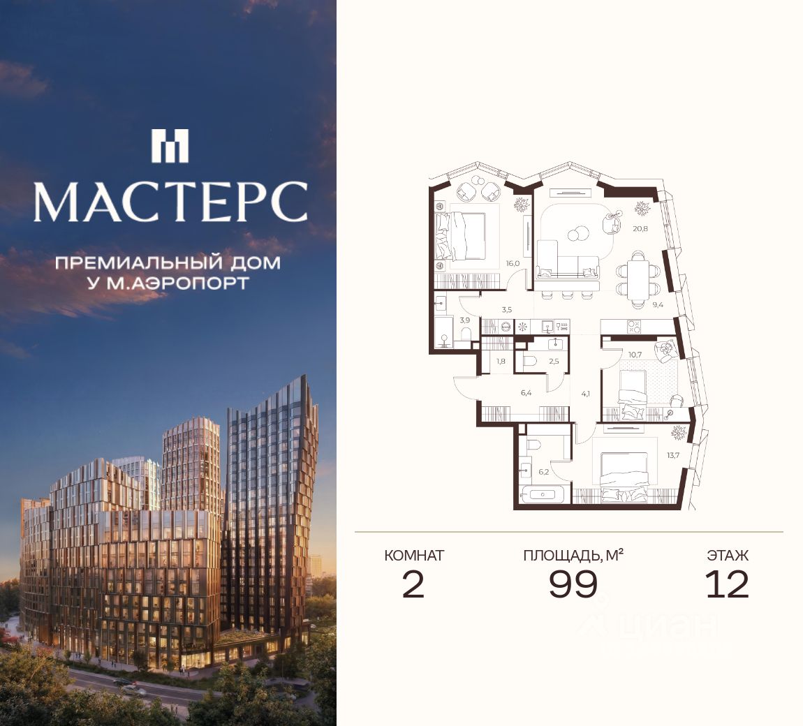 МАСТЕРС — премиальный дом в престижной северной части Москвы, всего в 15 минутах езды от Кремля. Непосредственная близость к метро "Аэропорт" обеспечивает превосходную транспортную доступность. Это идеальный баланс приватности, природы и динамики столицы. Приватный двор: атмосфера загородного отеля Приватный двор — продолжение жилого пространства с атмосферой роскошного загородного отеля. Натуральные материалы, всесезонный сад из более чем 600 деревьев и кустарников. Во дворе — авторская мебель индивидуального производства, пергола с водной чашей и развивающая детская площадка. Вечерняя ландшафтная подсветка создаёт неповторимый уют. Линейный парк: природа мастерства Современный парк гармонично сочетает природу и инфраструктуру. Здесь сохранены десятки взрослых деревьев. Для детей — игровые площадки и сенсорные тропы. Для взрослых — места для отдыха и спорта, коворкинг и амфитеатр, а также площадка для йоги и аптекарский огород. Квартиры: мастерство внутри Более 100 вариантов планировочных решений — для максимальной индивидуальности. Угловые форматы квартир и панорамное остекление наполняют пространство светом. Доступны квартиры с мастер-спальнями, террасами, гардеробными и ванными с окном. Лобби: форма вдохновения Двухсветное мастер-лобби площадью 160 м² впечатляет эффектным панорамным остеклением и дизайнерской парадной лестницей. Клубная гостиная трансформируется под разные форматы мероприятий. Для деловых встреч здесь предусмотрены коворкинг и акустическая кабина для звонков. Во всех лобби расположены лаундж-зоны, колясочные, зарядки для самокатов и лапомойки. Паркинг: мастерство в деталях* Двухуровневый паркинг на 363 места и индивидуальные кладовые площадью от 4 до 6 м² для хранения вещей. Инфраструктура для повседневного комфорта включает зарядные станции для электромобилей, мойку колёс и подкачку шин.