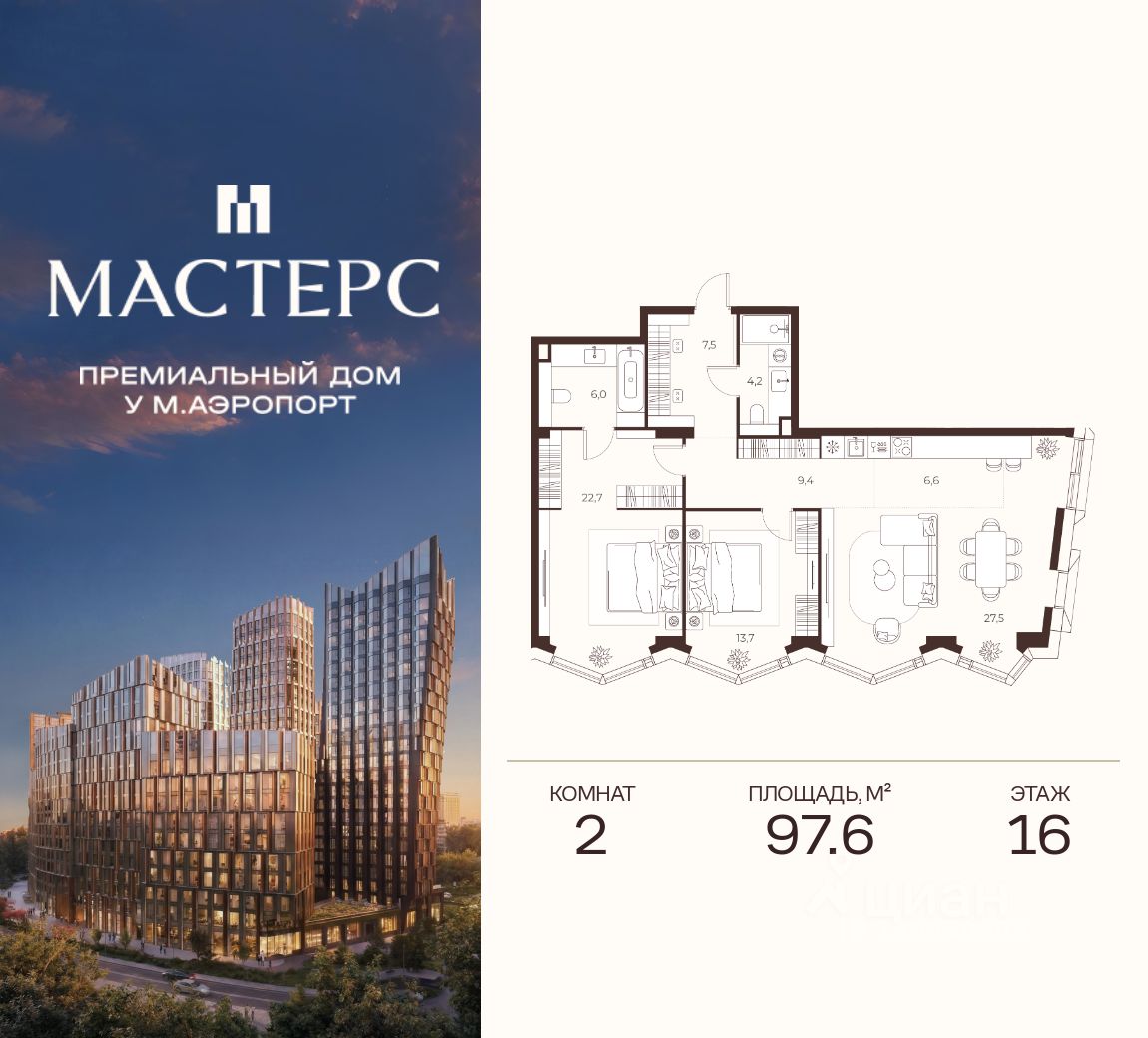 МАСТЕРС — премиальный дом в престижной северной части Москвы, всего в 15 минутах езды от Кремля. Непосредственная близость к метро "Аэропорт" обеспечивает превосходную транспортную доступность. Это идеальный баланс приватности, природы и динамики столицы. Приватный двор: атмосфера загородного отеля Приватный двор — продолжение жилого пространства с атмосферой роскошного загородного отеля. Натуральные материалы, всесезонный сад из более чем 600 деревьев и кустарников. Во дворе — авторская мебель индивидуального производства, пергола с водной чашей и развивающая детская площадка. Вечерняя ландшафтная подсветка создаёт неповторимый уют. Линейный парк: природа мастерства Современный парк гармонично сочетает природу и инфраструктуру. Здесь сохранены десятки взрослых деревьев. Для детей — игровые площадки и сенсорные тропы. Для взрослых — места для отдыха и спорта, коворкинг и амфитеатр, а также площадка для йоги и аптекарский огород. Квартиры: мастерство внутри Более 100 вариантов планировочных решений — для максимальной индивидуальности. Угловые форматы квартир и панорамное остекление наполняют пространство светом. Доступны квартиры с мастер-спальнями, террасами, гардеробными и ванными с окном. Лобби: форма вдохновения Двухсветное мастер-лобби площадью 160 м² впечатляет эффектным панорамным остеклением и дизайнерской парадной лестницей. Клубная гостиная трансформируется под разные форматы мероприятий. Для деловых встреч здесь предусмотрены коворкинг и акустическая кабина для звонков. Во всех лобби расположены лаундж-зоны, колясочные, зарядки для самокатов и лапомойки. Паркинг: мастерство в деталях* Двухуровневый паркинг на 363 места и индивидуальные кладовые площадью от 4 до 6 м² для хранения вещей. Инфраструктура для повседневного комфорта включает зарядные станции для электромобилей, мойку колёс и подкачку шин.