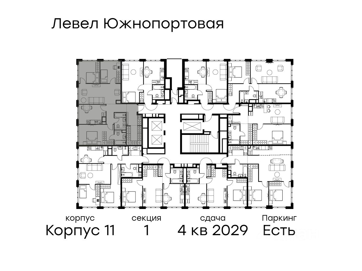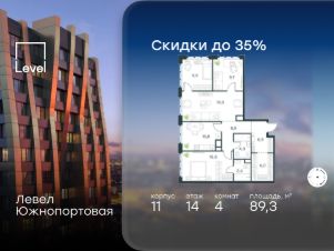 В северной части района Печатники продается 4-комнатная квартира площадью 89.30 кв.м без отделки. Квартира расположена на 14 этаже 16-этажного корпуса 11 в жилом комплексе комфорт-класса Левел Южнопортовая (компания Level Group/Левел групп).