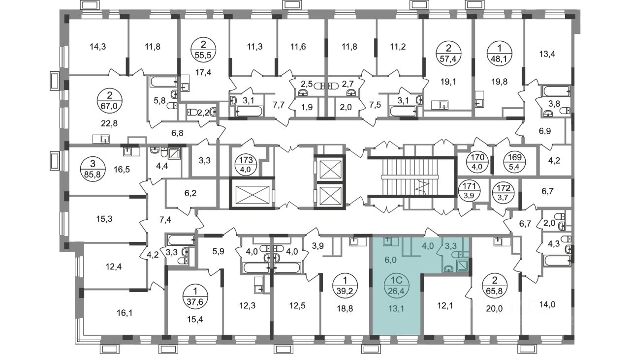 Общая площадь квартиры - 26,4 кв. м, этаж 16 из 19.