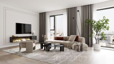 - окна в пол высотой 2,5-2,68 м с панорамным видом на МГУ, Москва-Сити и другие доминанты Москвы;