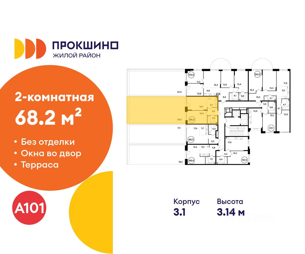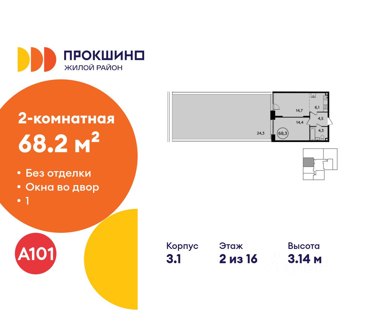 Продается двухкомнатная квартира 184 в новостройке Жилой квартал "Прокшино" по адресу Москва, ТиНАО, Новомосковский АО, Сосенское С/П, Прокшинский проспект, 9, район Коммунарка, Новомосковский административный округ, Москва. Общая площадь квартиры - 68.20 кв. м., этаж 2 из 16, секция 3. Тип проекта, по которому построен дом - монолит, компания-застройщик - ООО "А101". Стоимость квартиры - 23183908 Р.