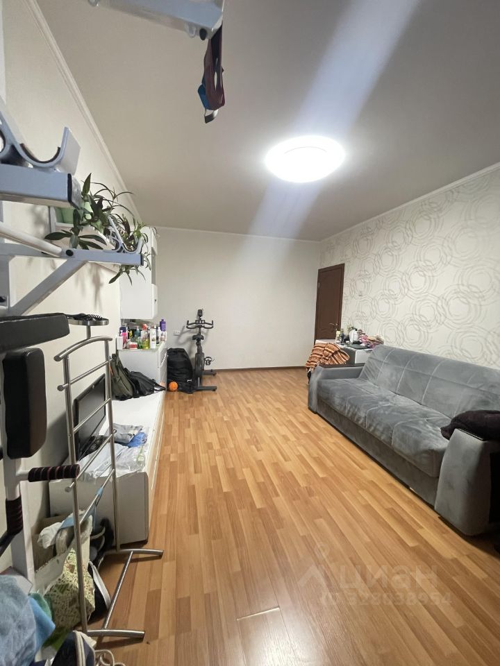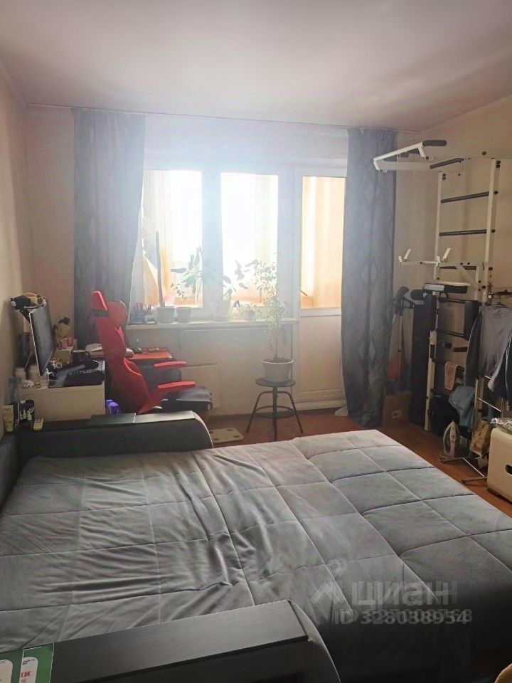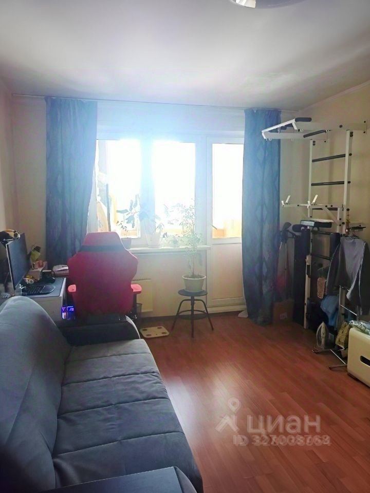 Комната с хорошим ремонтом, стены — обои, пол — ламинат. Окна выходят во двор на южную сторону, поэтому в комнате светло днем. Из комнаты есть выход на застекленную лоджию, где установлен шкаф.