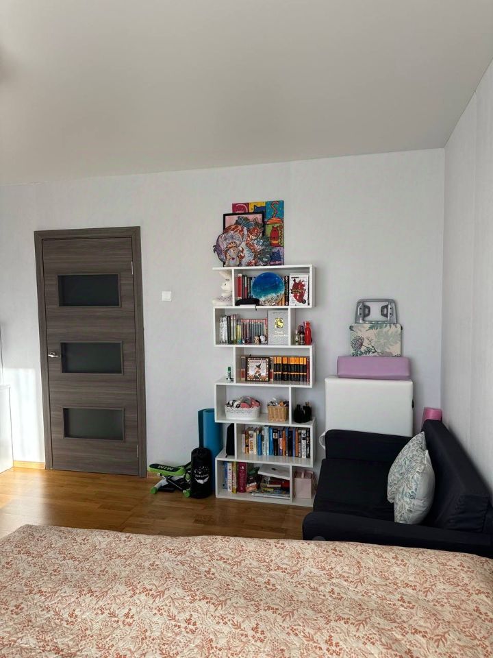 В квартире сделан косметический ремонт. Комната светлая и просторная. Кухня оборудована всем необходимым для комфортного приготовления пищи. Санузел совмещенный, что увеличивает удобство пользования. Есть 2 балкона(1 из них утепленный). Есть гардеробная. Мебель по договоренности.