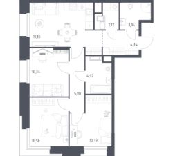 Строим кварталы для жизни с заботой о будущем. Предлагаются 3-комнатные апартаменты бизнес-класса площадью 69,27 кв.м в корпусе 2.2 на 10-м этаже, в жилом комплексе "Тропарево Парк".
