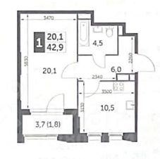 Продается 1-комн. квартира, 43,3 м²