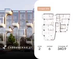 В историческом районе Хамовники продаются 6-к апартаменты площадью 340.90 кв.м, расположенные на 2 этаже делюкс-резиденции Саввинская 27.