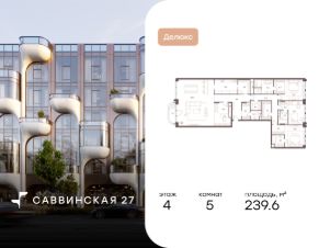 В историческом районе Хамовники продаются 5-к апартаменты площадью 239.60 кв.м, расположенные на 4 этаже делюкс-резиденции Саввинская 27.