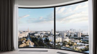 - окна в пол высотой 2,5-2,68 м с панорамным видом на МГУ, Москва-Сити и другие доминанты Москвы;