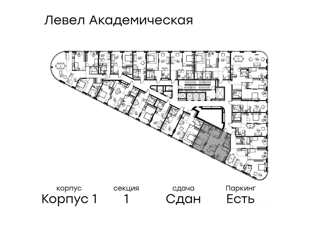 В Академическом районе продаётся 3-комнатная квартира площадью 67.00 кв.м без отделки. Квартира расположена на 17-м этаже 19-этажного жилого комплекса бизнес-класса Левел Академическая (компания Level Group).