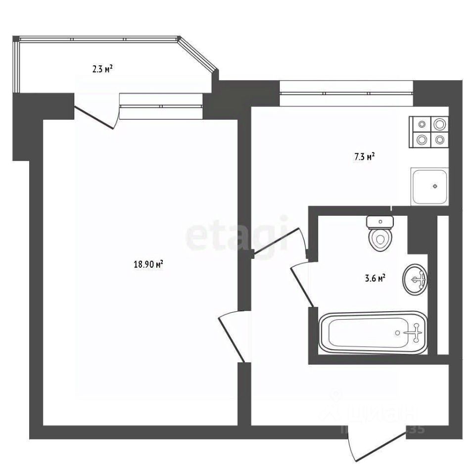 - просторная комната - 18,9 кв. м с выходом на застеклённую лоджию (2,3 кв. м),