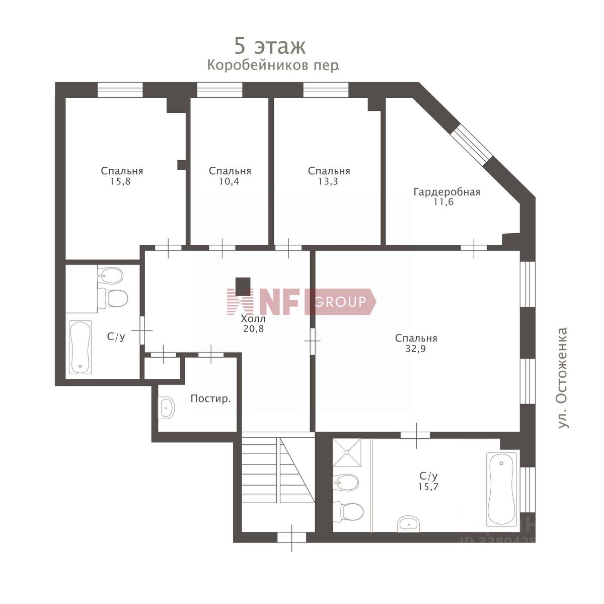 Квартира расположена в пятиэтажной секции, занимает 4 и 5 этажи.