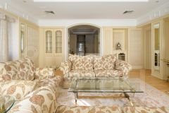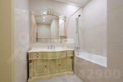 Выполнена отделка в классическом стиле, квартира меблирована и оснащена качественной бытовой техникой.