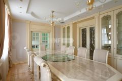 1 уровень: гостиная, столовая, кухня с отдельным входом и отделена от столовой раздвижными дверями, кабинет, гостевой санузел, гардеробная.