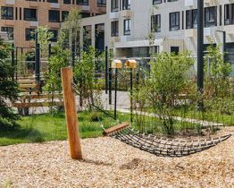 В проекте жилые дома, 2 детских сада на 150 и 235 мест, школа на 1100 мест и подземные паркинги на 525 машиномест. В зелёных дворах-парках будут места для отдыха, современные детские и спортивные площадки. На первых этажах откроются магазины, кафе и другие сервисы — за кофе и свежим хлебом к завтраку можно будет просто спуститься на лифте.