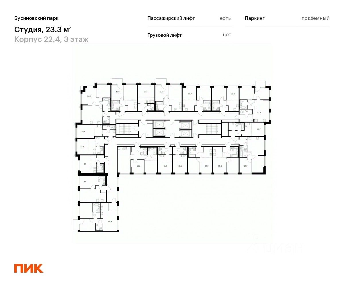 Продаётся квартира-студия площадью 23,3 кв.м на 3 этаже 24 этажного дома (Корпус 22.4, Секция 4) проекта ПИК Бусиновский парк. Светлый просторный подъезд на уровне земли, функциональная планировка, большие окна, c отделкой.