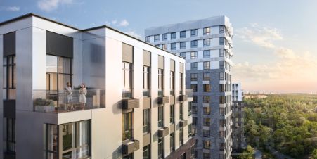 Квартал состоит из монолитно-кирпичных домов высотой от 6 до 19 этажей с панорамными террасами.