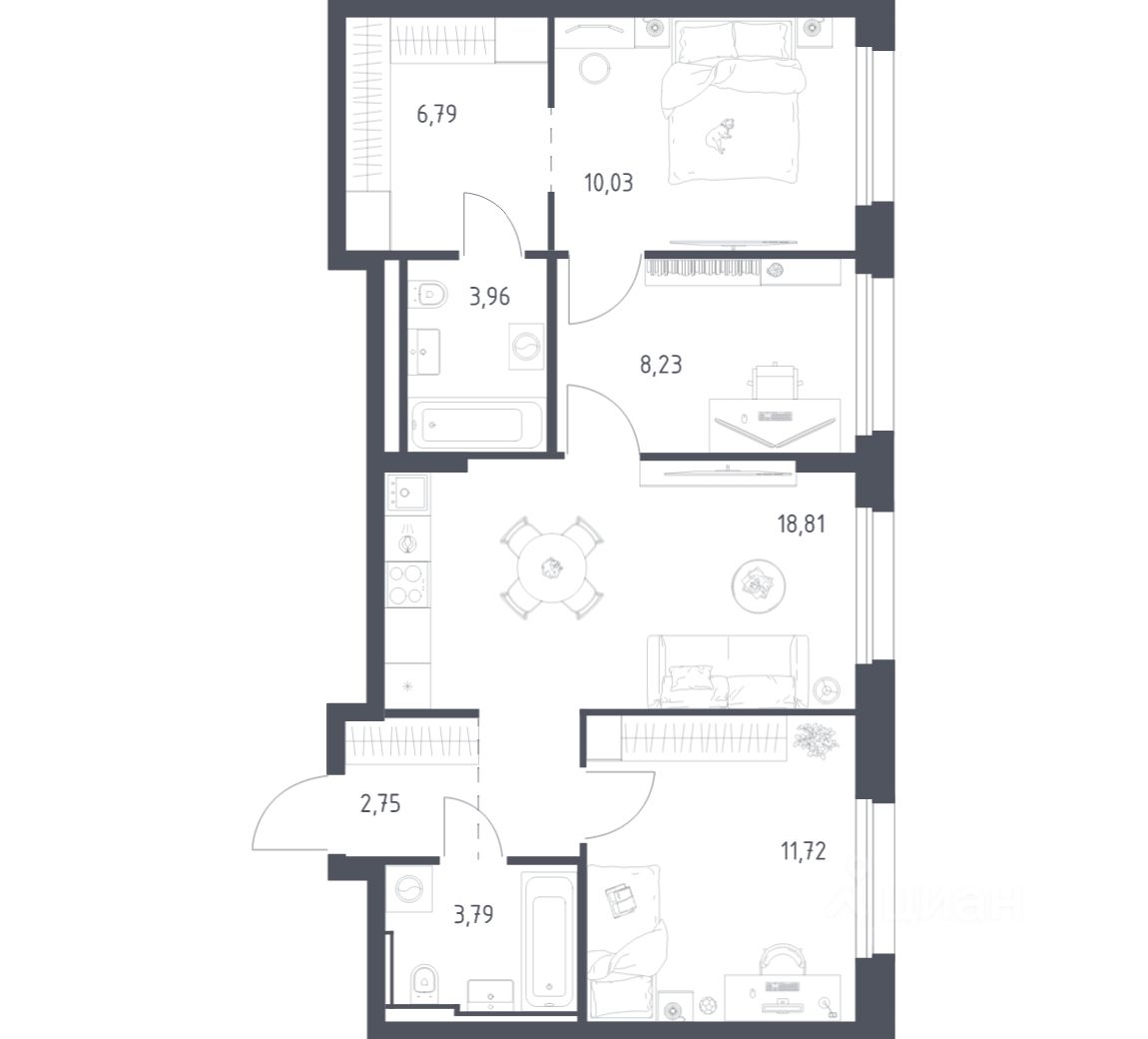 Строим кварталы для жизни с заботой о будущем. Предлагается 2-комнатная квартира комфорт-класса площадью 66,08 кв.м в корпусе 1 на 12-м этаже, в жилом комплексе "Литературный Квартал".