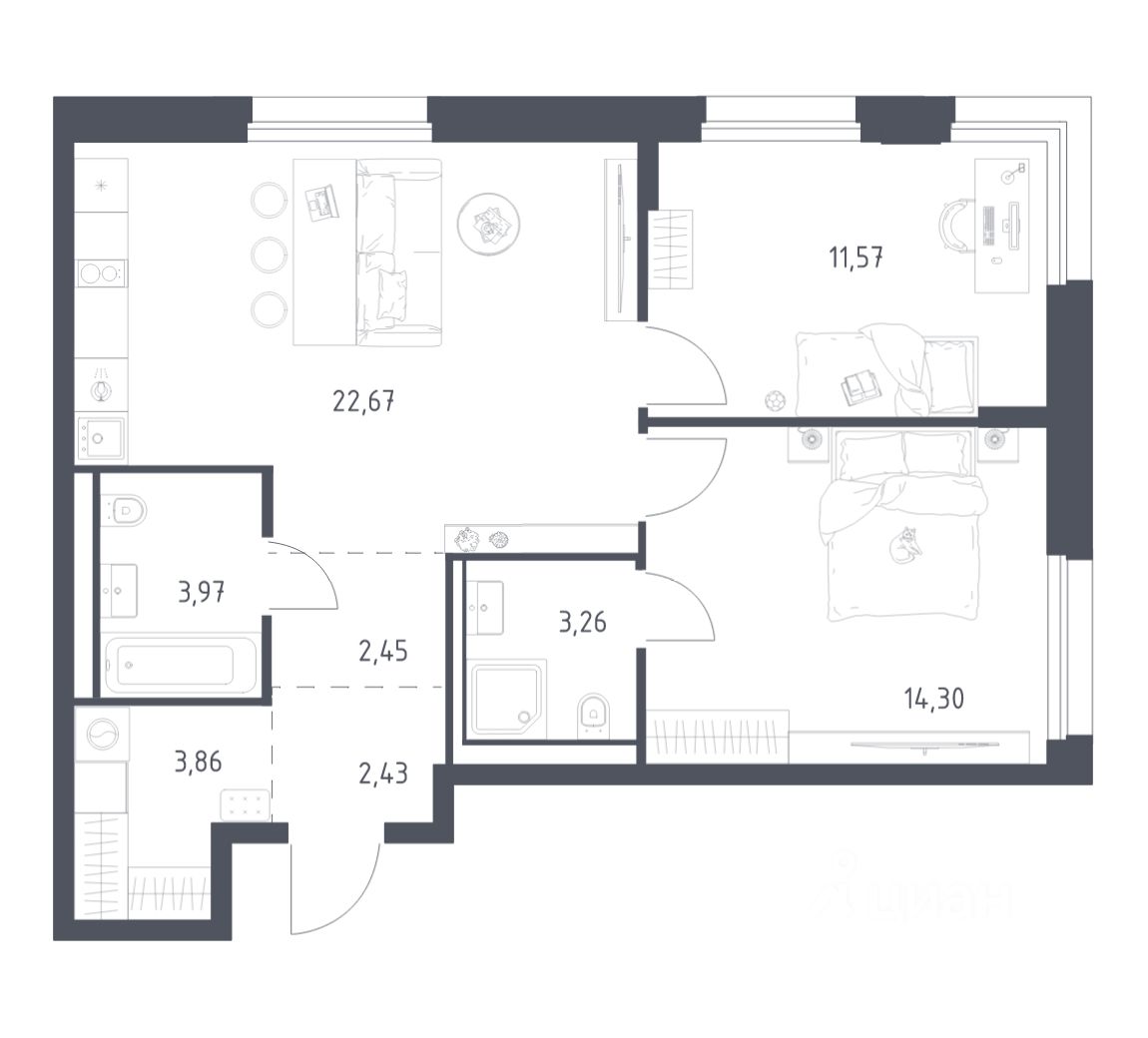 Строим кварталы для жизни с заботой о будущем. Предлагается 2-комнатная квартира комфорт-класса площадью 64,51 кв.м в корпусе 1 на 12-м этаже, в жилом комплексе "Литературный Квартал".