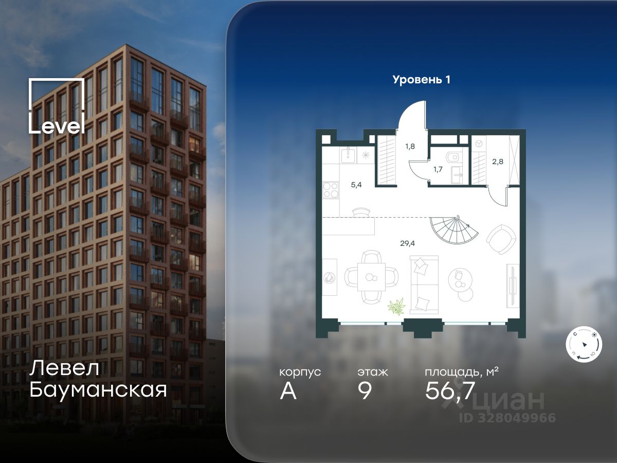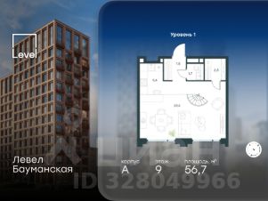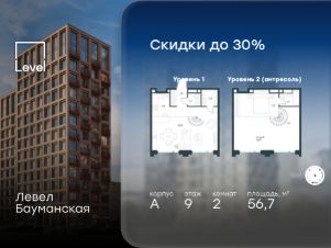 В Басманном районе (ЦАО) продается 2-комнатная квартира площадью 56.70 кв.м без отделки. Квартира расположена на 9 этаже 9-этажного корпуса " A" в жилом комплексе бизнес-класса Левел Бауманская (компания Level Group).