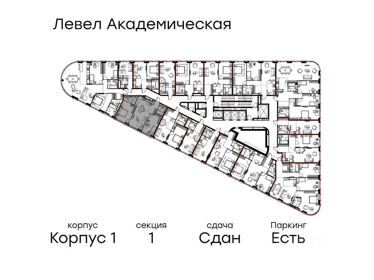 В Академическом районе продаётся 3-комнатная квартира площадью 64.60 кв.м без отделки. Квартира расположена на 17-м этаже 19-этажного жилого комплекса бизнес-класса Левел Академическая (компания Level Group).