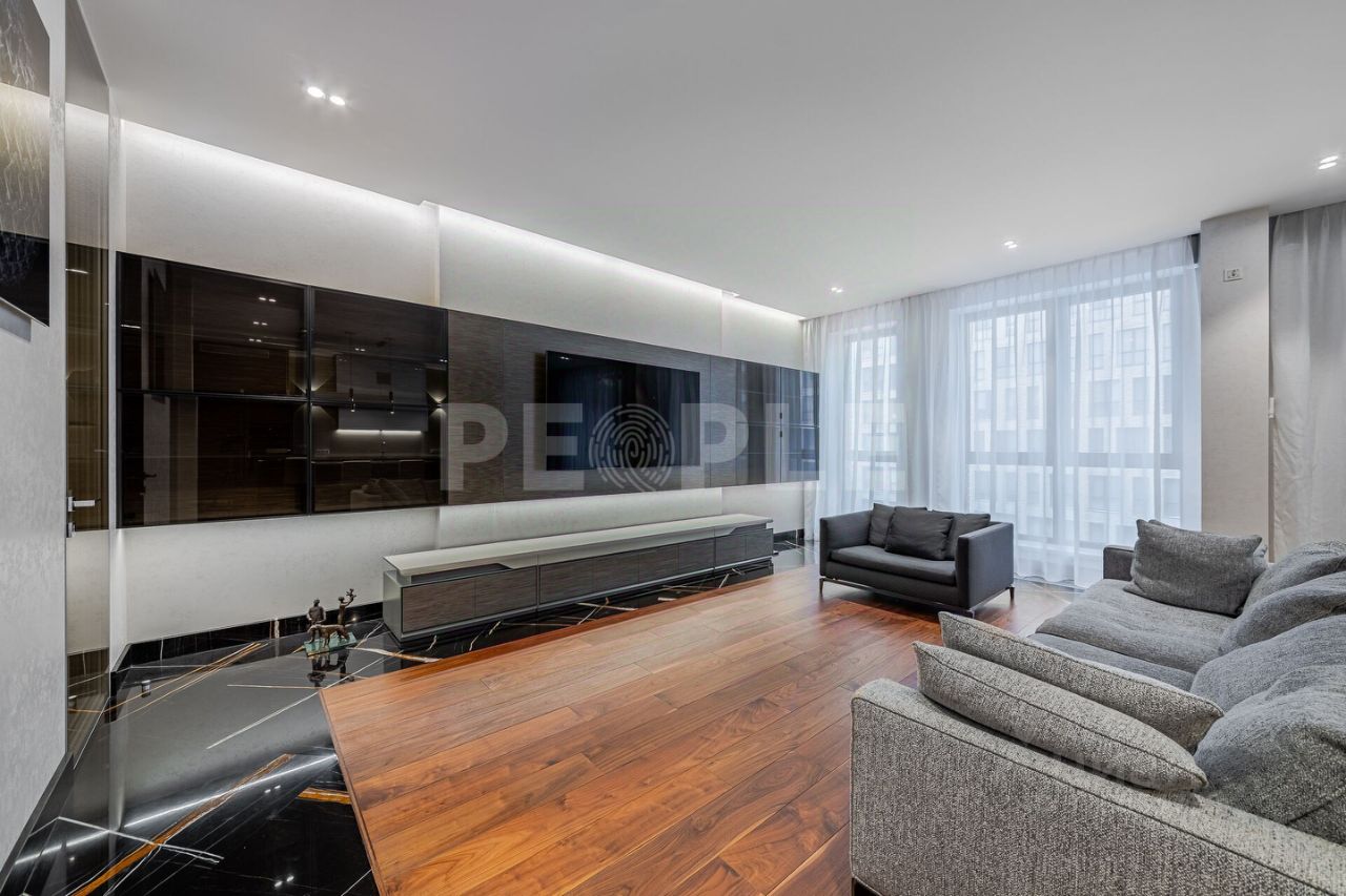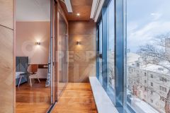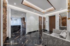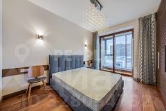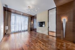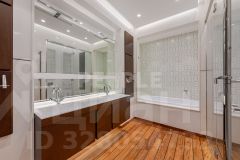 Изысканная отделка с использованием натуральных и благородных материалов. Мрамор и дерево (канадский орех) на полу, натуральная пробка на стенах. Стены в мастер-спальне и кабинете обтянуты кожей алькантара.