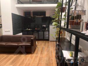Просторная гостиная объединена с кухней, в лофте расположена спальная зона