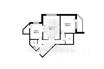 Изолированная спальня с лоджией, большая гостиная, два санузла, кладовая комната.