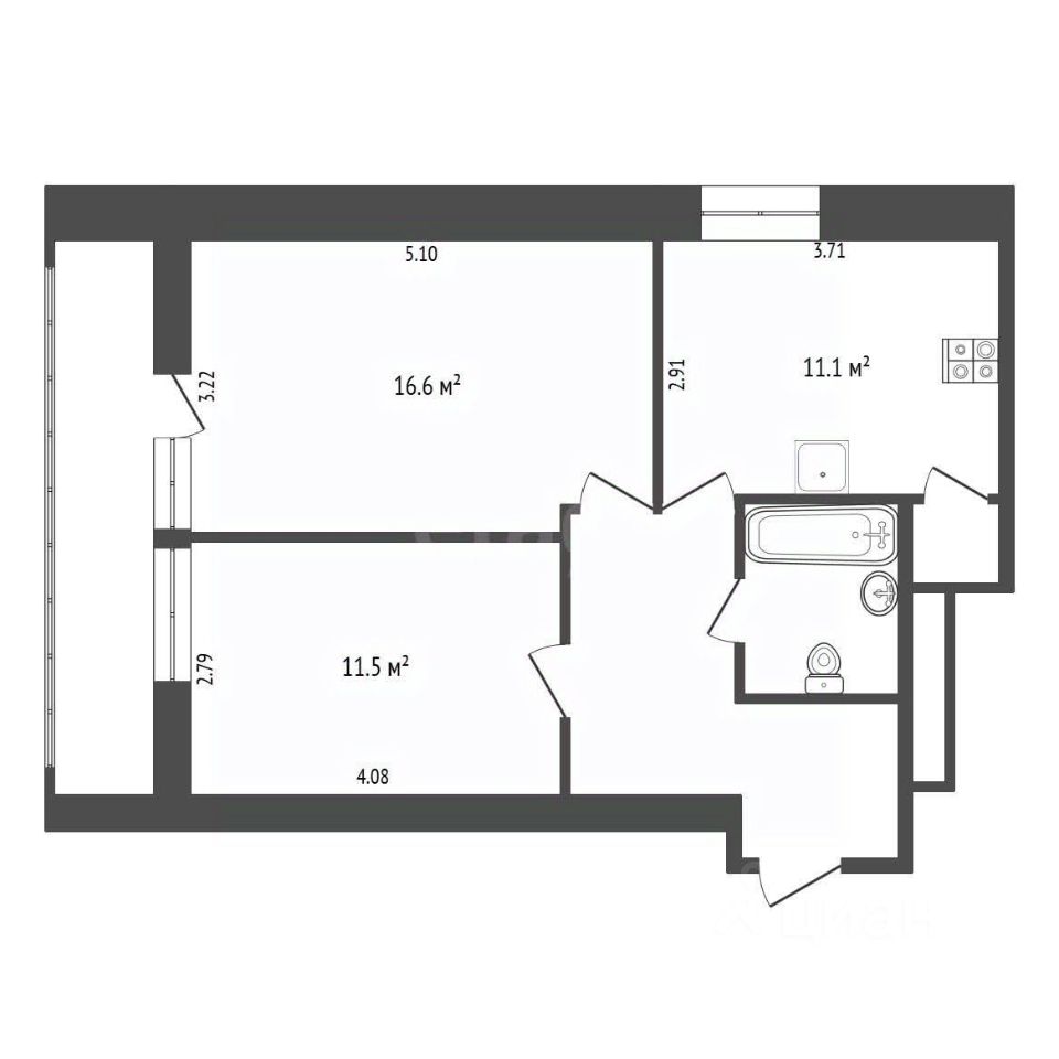 - совмещенный санузел;
