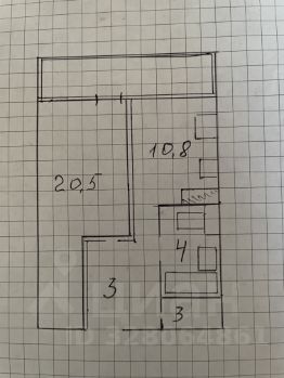 Общая площадь 39,7 м.кв., комната 20,5 м.кв., кухня 10,8 м.кв.