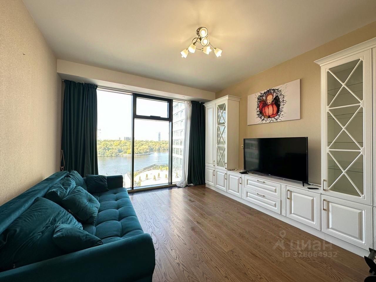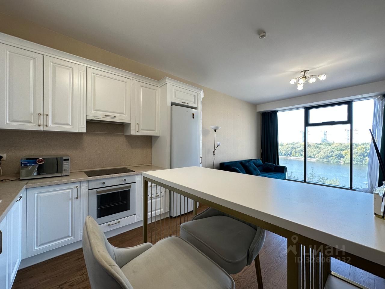 Комфортная планировка квартиры: кухня-гостиная - 25 м, спальня - 17 м. Панорамное остекленнение.
