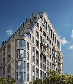 Неоклассический архитектурный проект переменной этажности (9-12 этажей) выполнен мастерской "Сергей Киселев и Партнеры". Фасады облицованы натуральным мрамором и гранитом, их оригинальный декор создан Андреем, Павлом и Петром Наличами. Благородный силуэт дома подчеркнут французскими балконами и моллированным остеклением на углах.