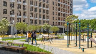 Все корпуса в квартале гармонично сочетаются, образуя единую городскую среду. Между собой их объединяет невысокая этажность и натуральная цветовая гамма. Здесь приятно гулять и проводить время на улице всей семьёй.