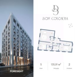 Продаётся 2-комнатная квартира в строящемся доме, срок сдачи: II-кв. 2028, общей площадью 135.91 кв.м., на 5 этаже. "Дом Соболева" - это камерный жилой комплекс класса делюкс, расположенный на тихой и уютной улице Машкова в самом сердце Москвы. Проект создавался с особой тщательностью, чтобы предоставить своим жителям уникальное пространство для жизни, в котором сочетаются эстетика архитектурного наследия и современные стандарты комфорта. Разработанный архитектурным бюро NOWADAYS, Дом воплощает современное прочтение стиля модерн, изысканно вписанного в историческую ткань района.