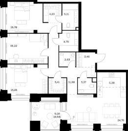 Продаётся 3-комнатная квартира в строящемся доме (Корпус 3), срок сдачи: IV-кв. 2027, общей площадью 119.77 кв.м., на 35 этаже. NOVA - Первый архитектурный проект в премиальной линейке Samolet Select - совершенной коллекции комфорта, статуса и преимуществ.
