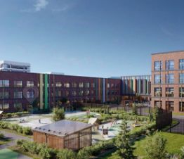 На территории предусмотрены школа, два детских сада, станция скорой помощи. Во дворах - игровые и спортивные площадки, пространства для отдыха и встреч с друзьями. Для активных игр обустроим плейхаб.